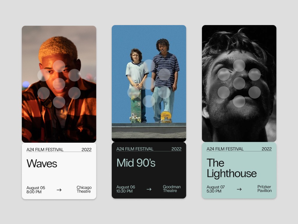 With A24 emerging from the niche film scene, it needed to showcase its diverse filmography to the broader film community. The goal was to create a versatile design system for a community driven film festival, developing a visual language that resonated with casual moviegoers and dedicated cinephiles. The goal was to design an adaptable system across multiple branding touchpoints, capturing the essence of cinema visually.